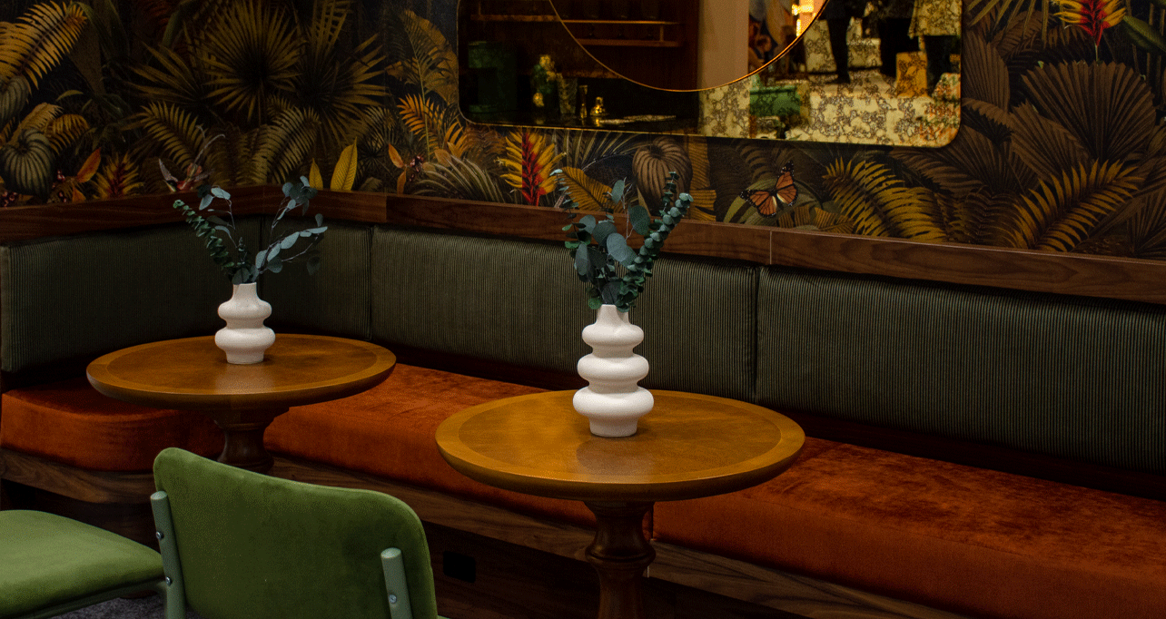 Our entirely redesigned booth space, features the mirror and casegoods we're known for coupled with exotic patterned interiors.