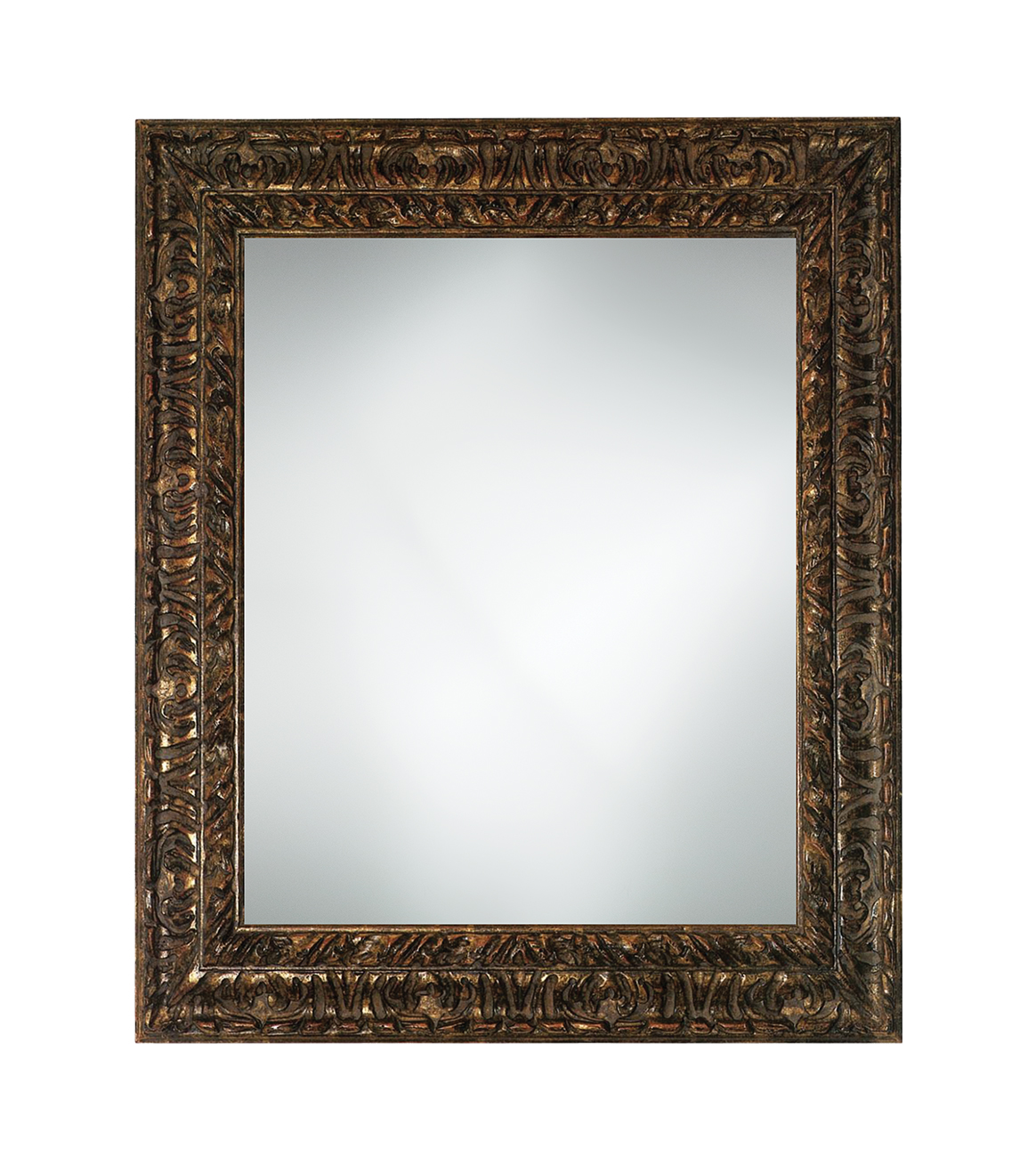 Antiqued 22 karat gold leaf on custom carved frame.
