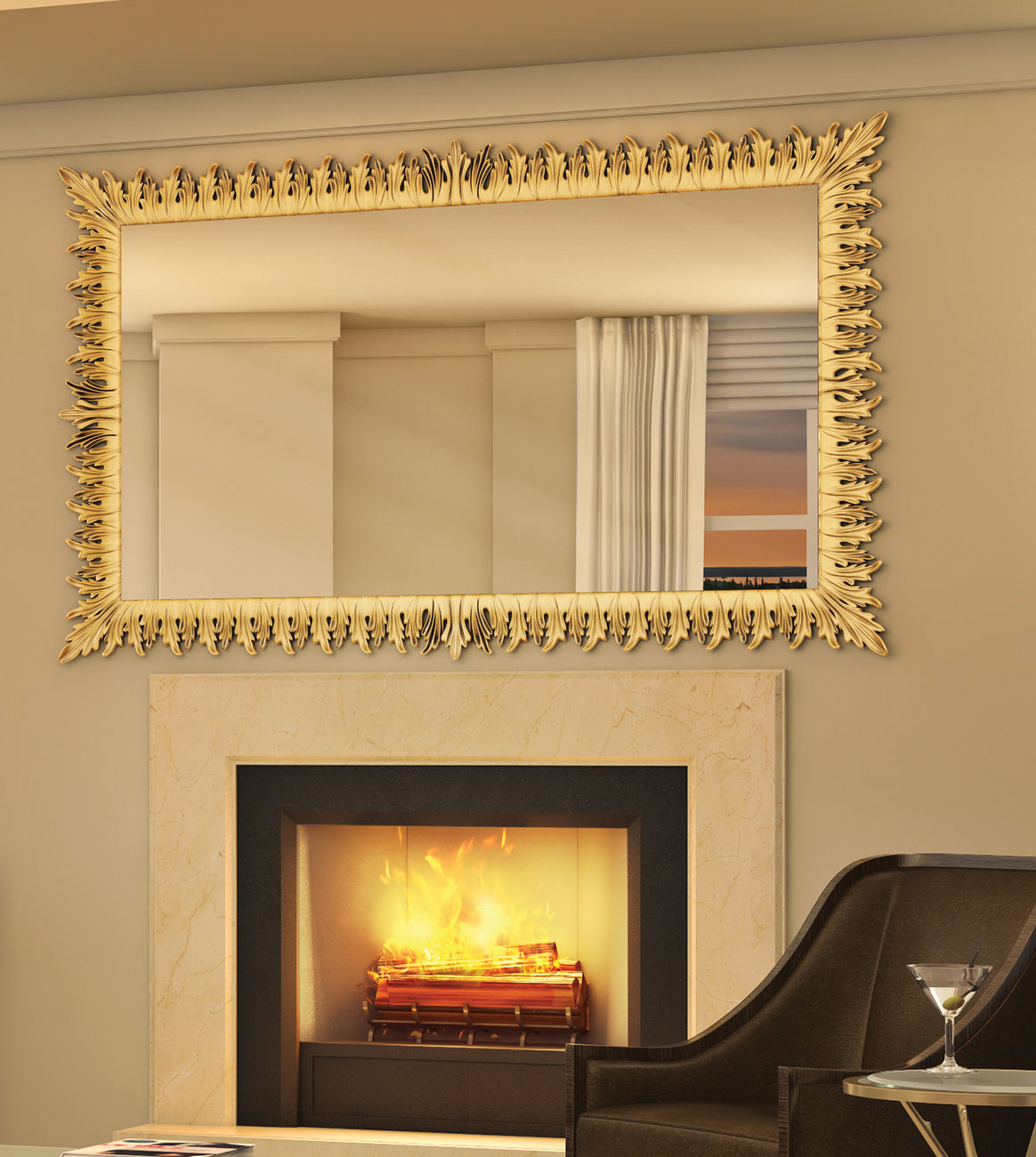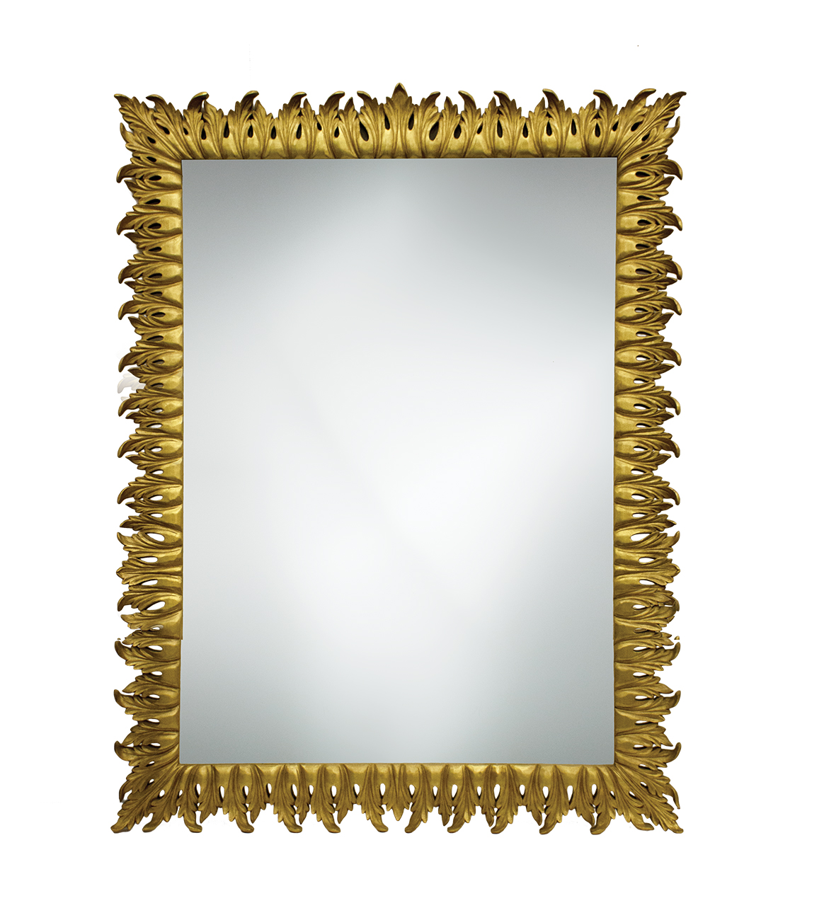 Heavily carved acanthus leaf motif, custom closed corners finished in gold metal leaf.