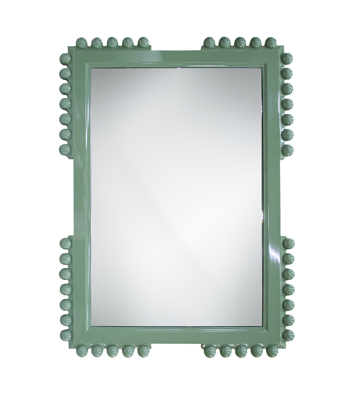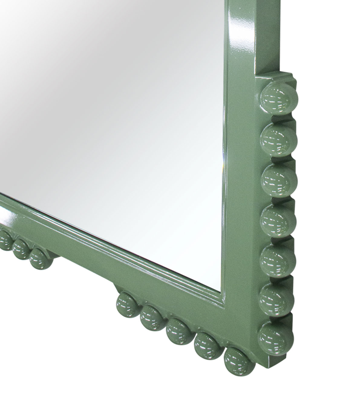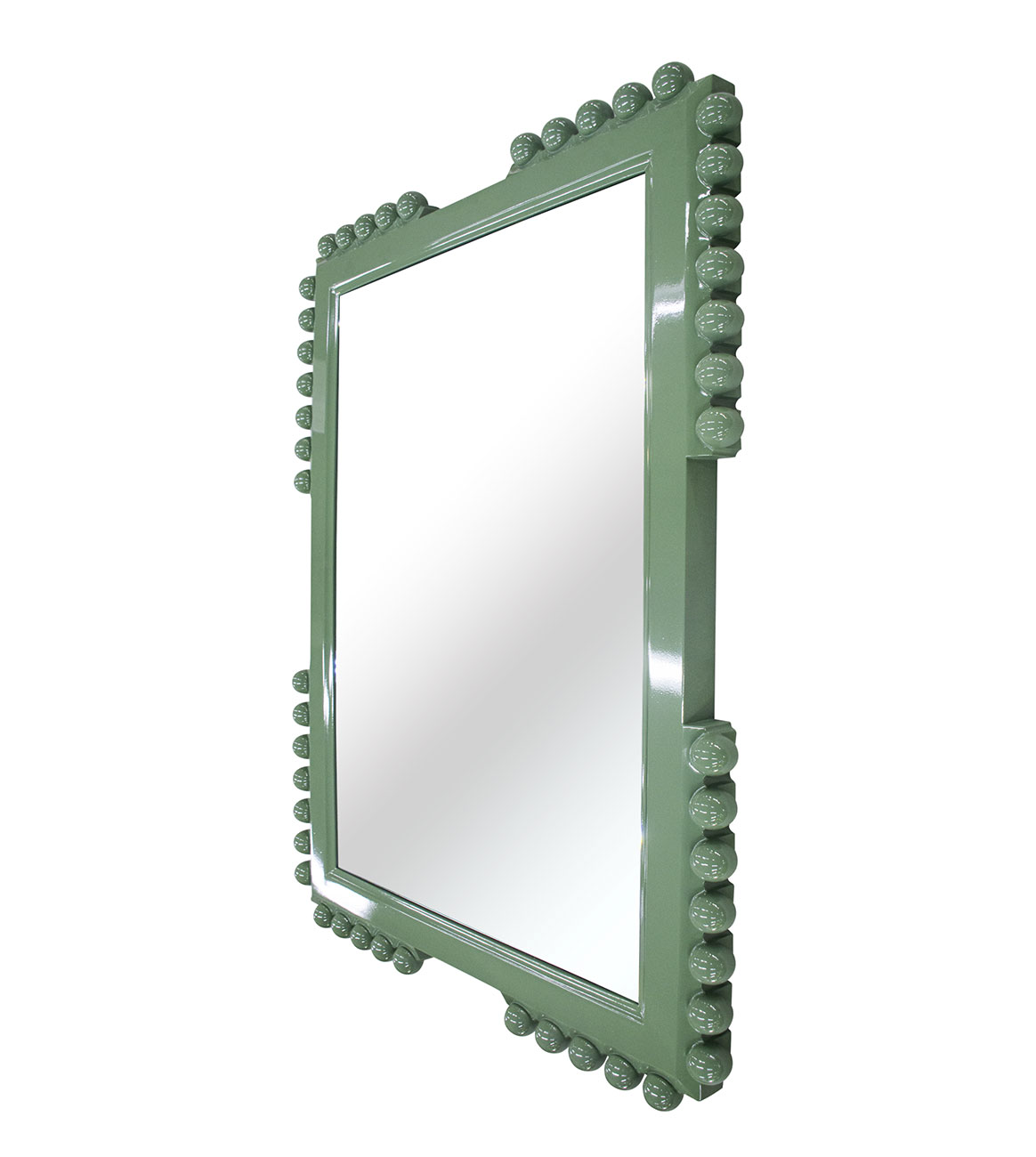 A whimsical riff on the classic late 17th-century bobbin furniture, this frame has a modern profile accented with textural ornaments consisting of a series of small knobs, resembling spools or bobbins. Custom sizes and finishes are available.