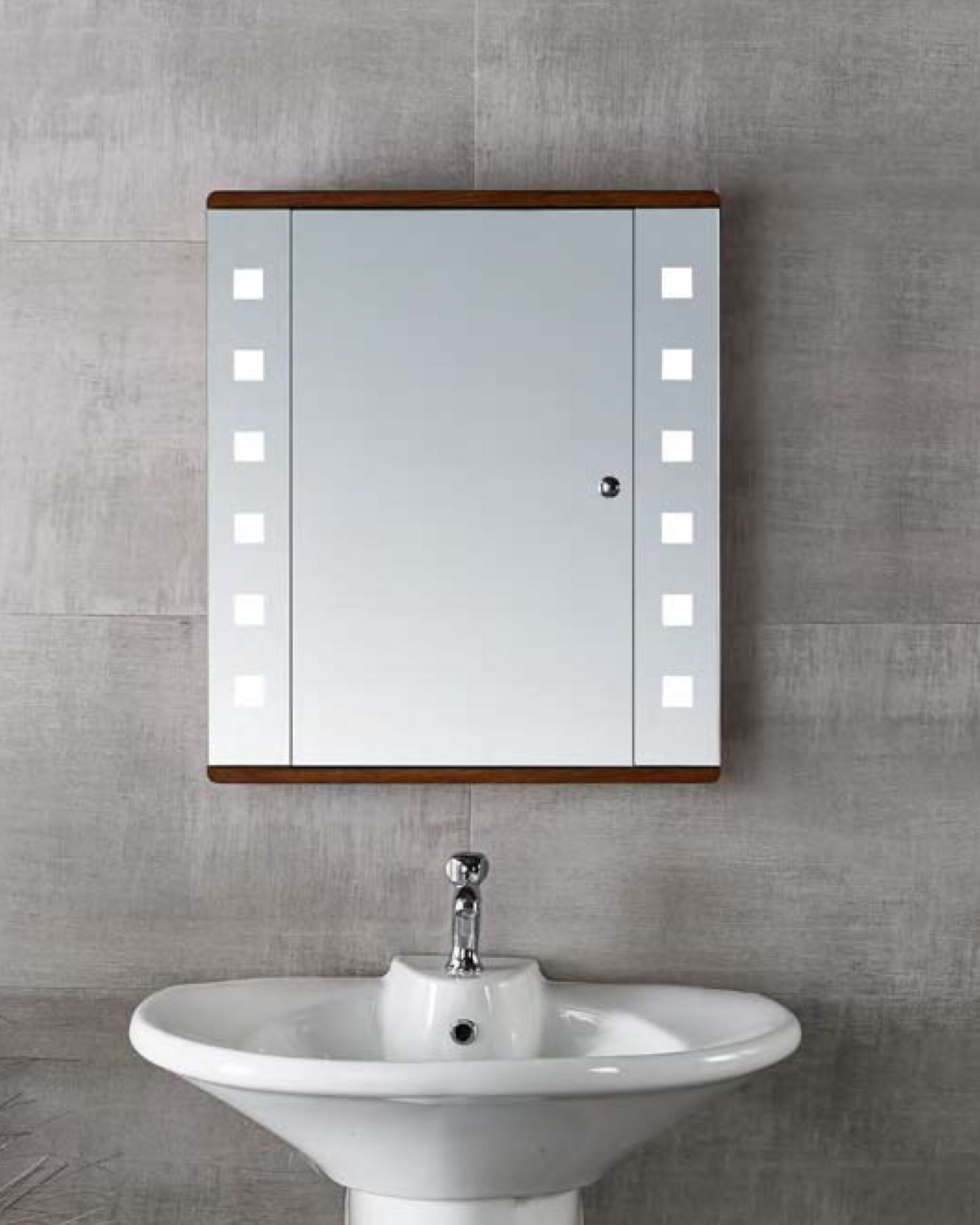Medicine Cabine with high-efficiency LED lighting, featuring a custom wood frame.