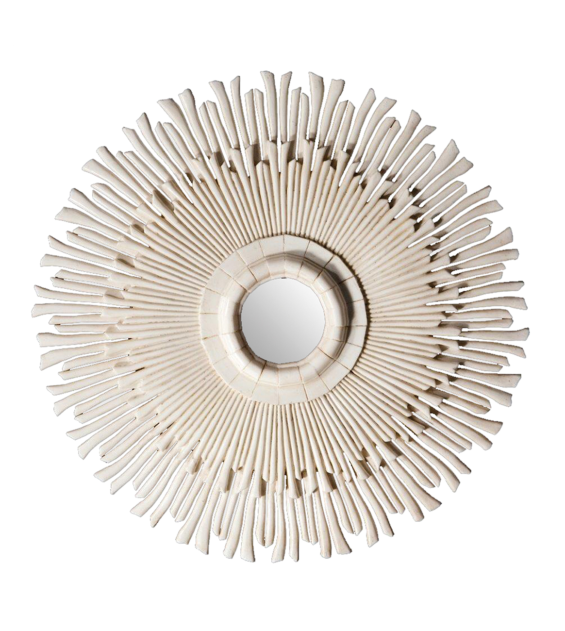 This cast resin round frame mimics the look of real ivory bone with handcrafted antiqued finish.