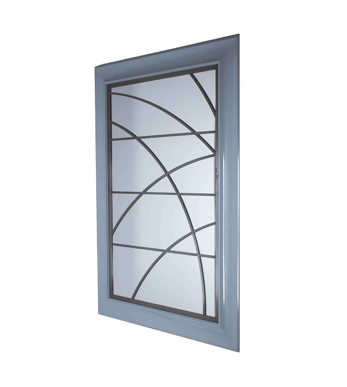 An elegant custom scoop frame with arching mullions over a clear mirror.