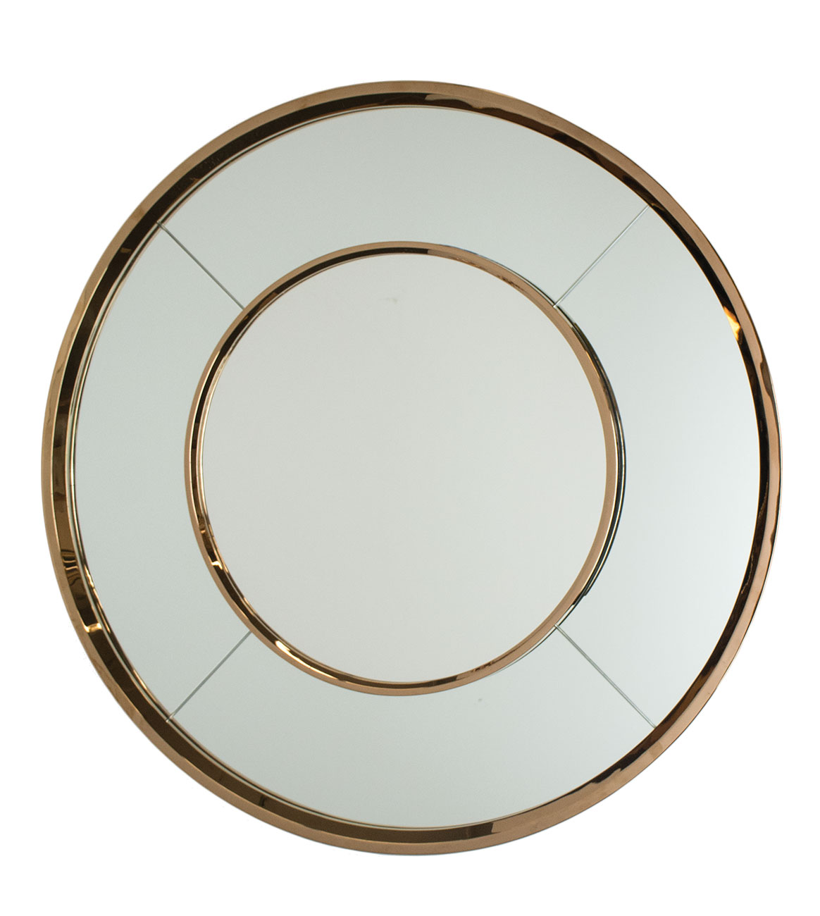 Concentric metal rings with a four-piece mirror at the panel and a round center mirror.