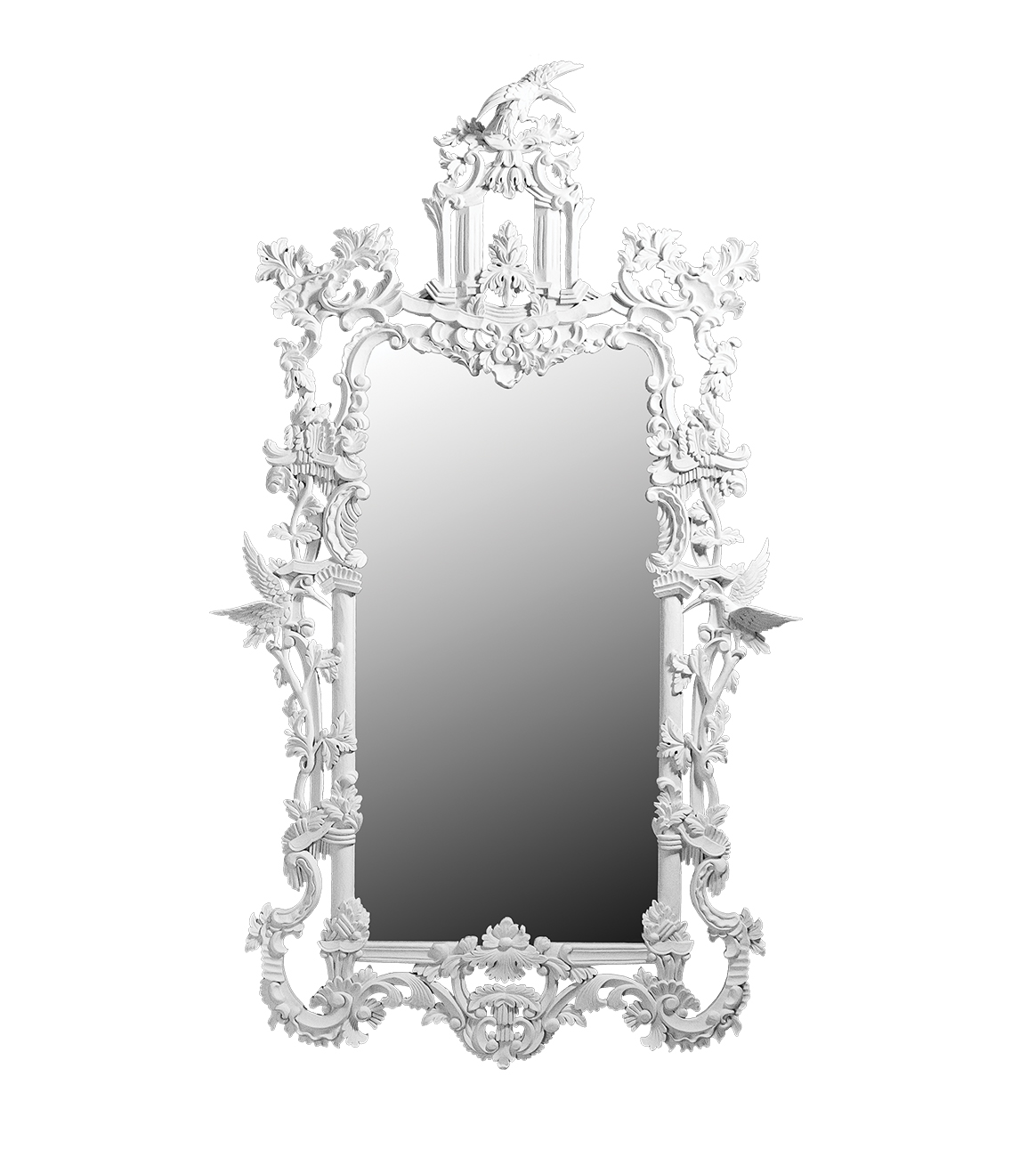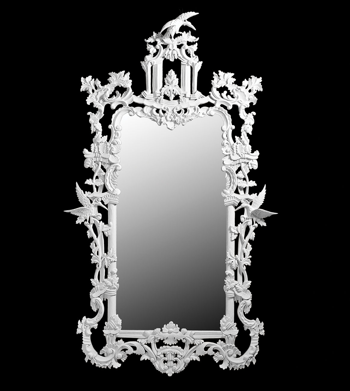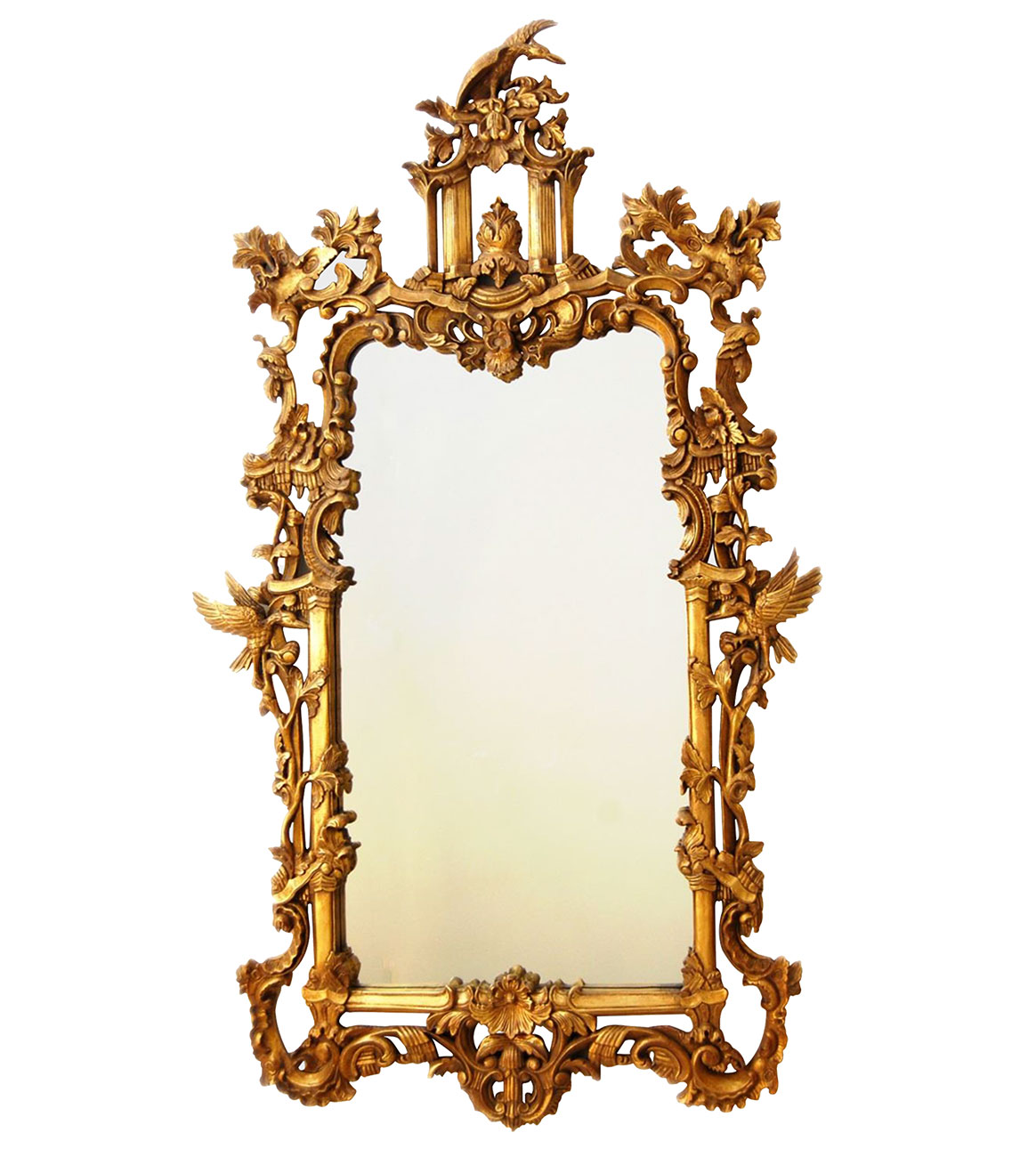Custom carved frame featuring an ornate asymmetric Rococo crown.