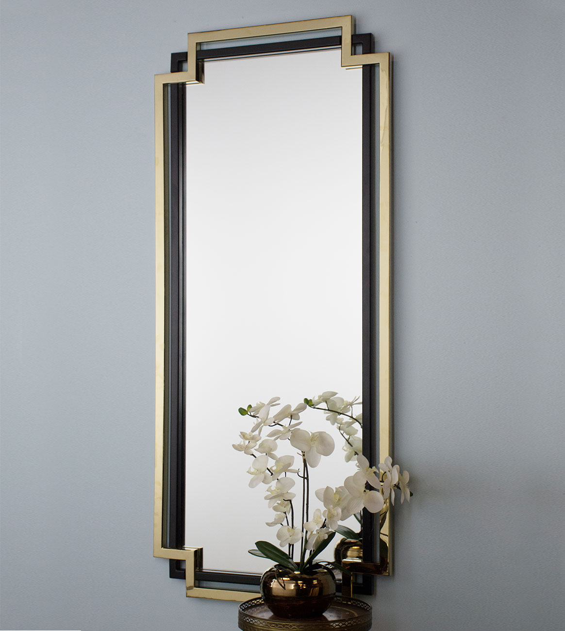Drawing inspiration from the decorative metalwork of New York City’s 1930’s skyscrapers, this mirror is new look at Deco.