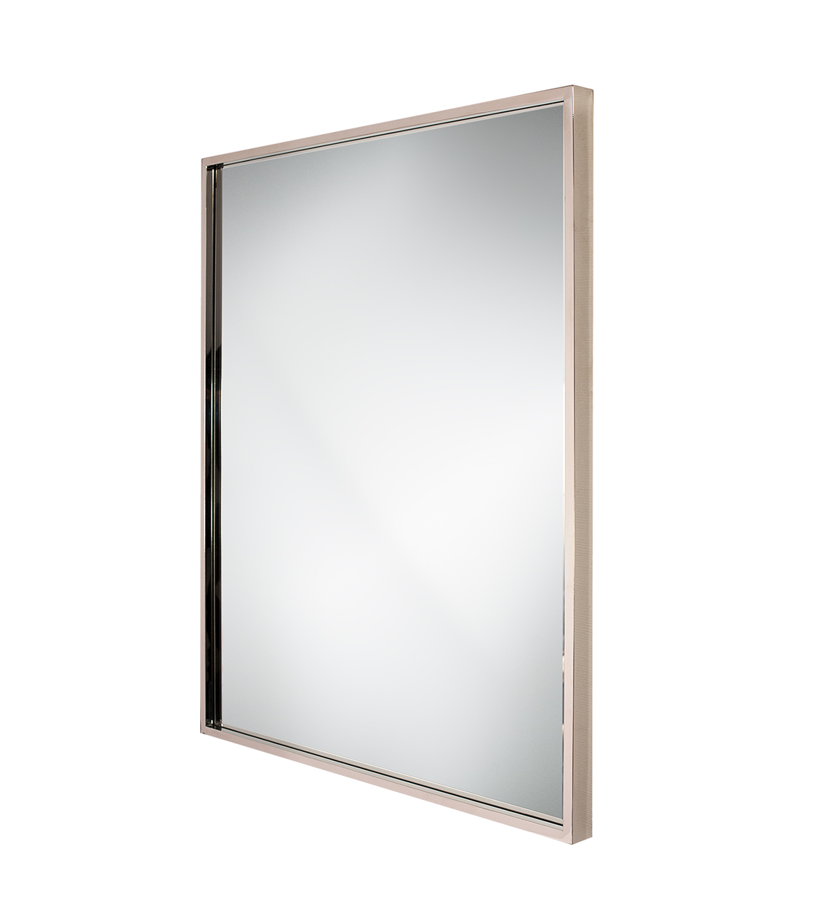 Features champagne-plated stainless steel frame with seamless corners.