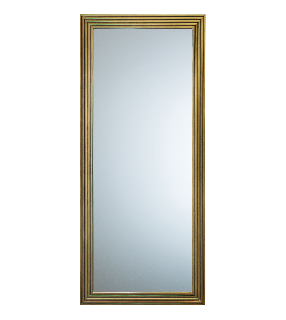 A full-length mirror with custom crafted wood frame featuring a grooved panel. The closed corners make this classic design extra special.