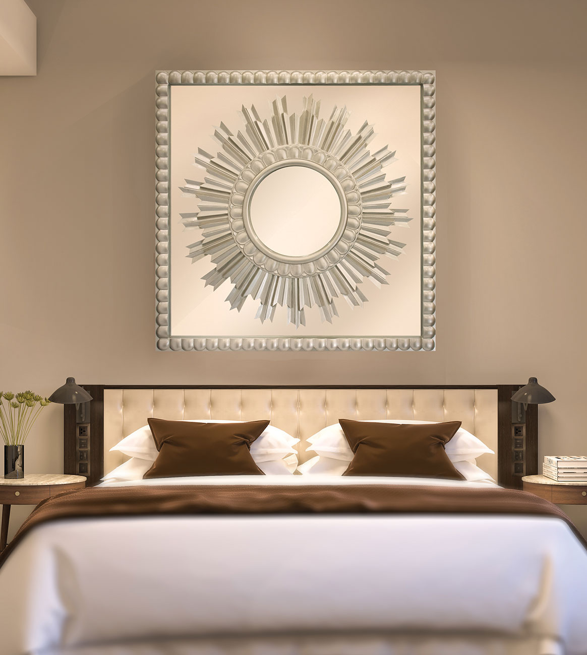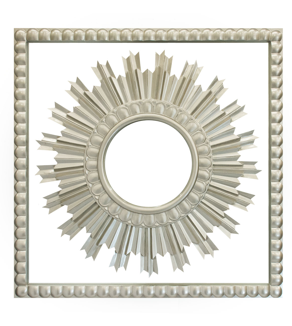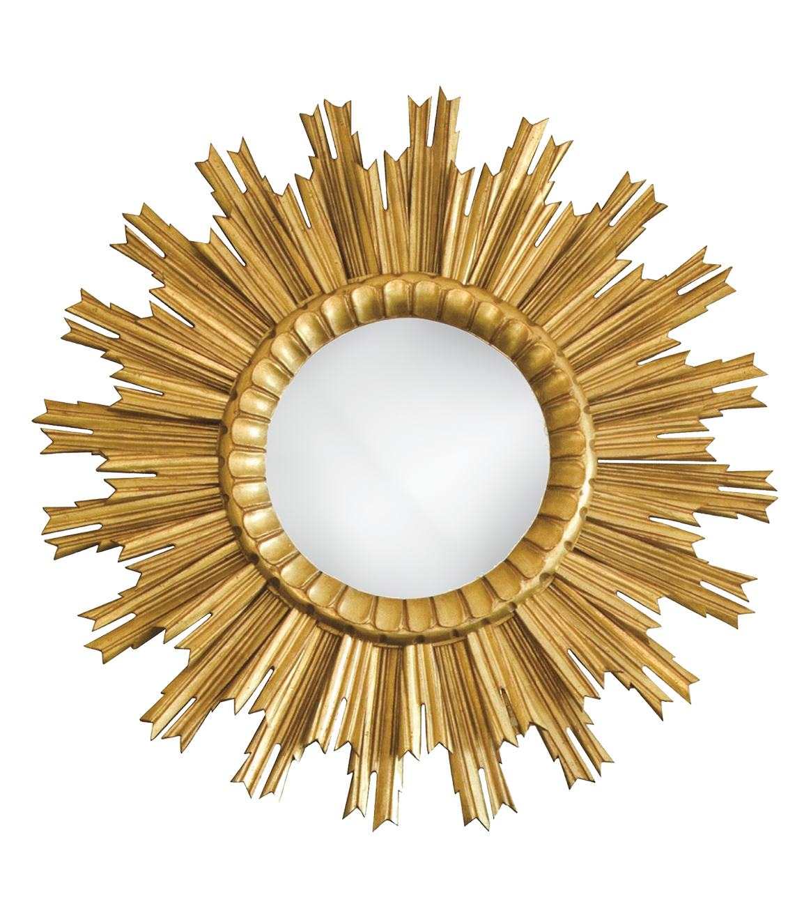 A classic design with three layers of carved rays, finished in antique gold metal leaf.