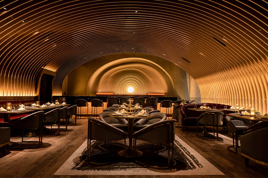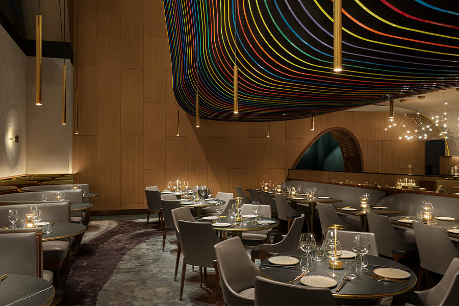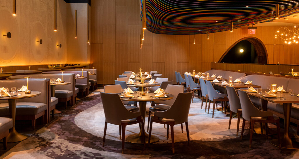 Photography: Unique design meets innovative contemporary Asian cuisine at 53NYC, featuring restaurant tables, chairs and banquettes manufactured by MunnWorks. Named the Best of Year Winner 2022 in Fine Dining.