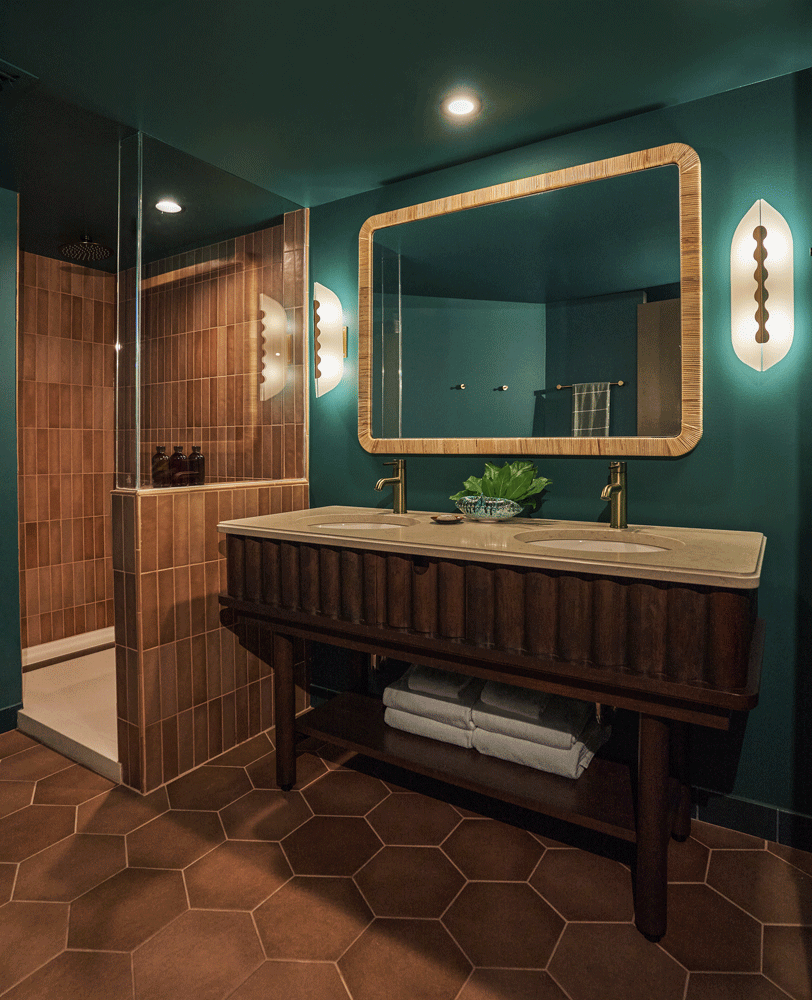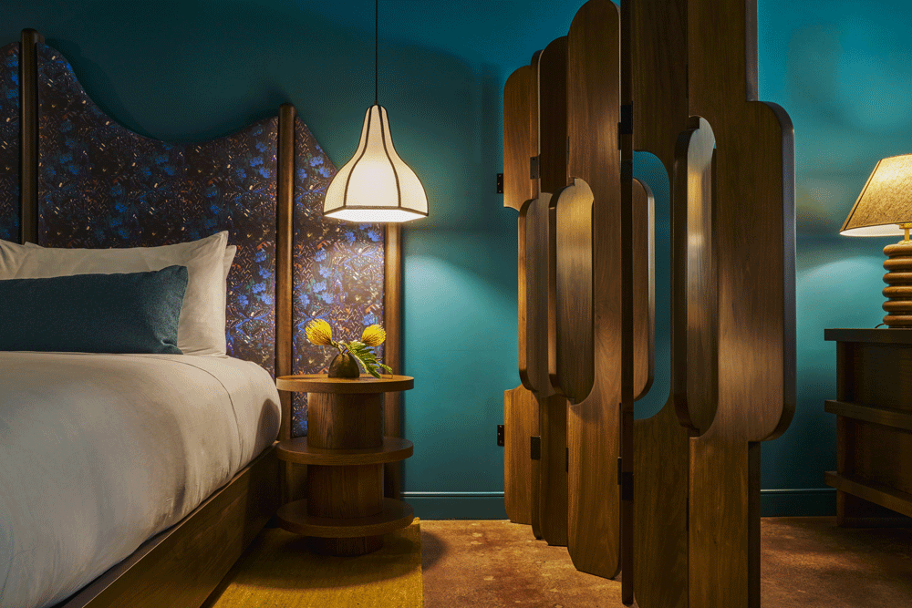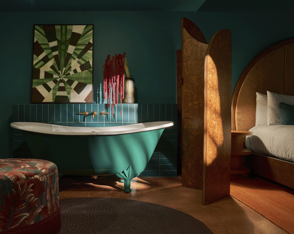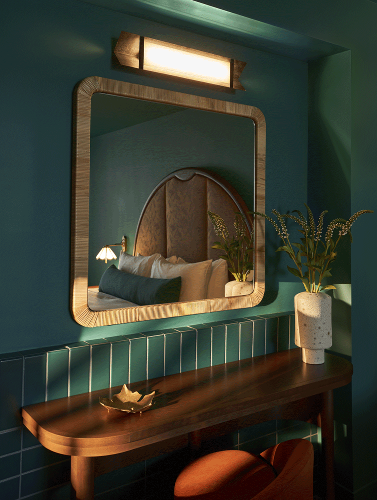 Location: Mayfair House MiamiDate: July 2023Scope: Rattan-wrapped hardwood framed mirrors and custom organic-shaped hardwood room dividers.